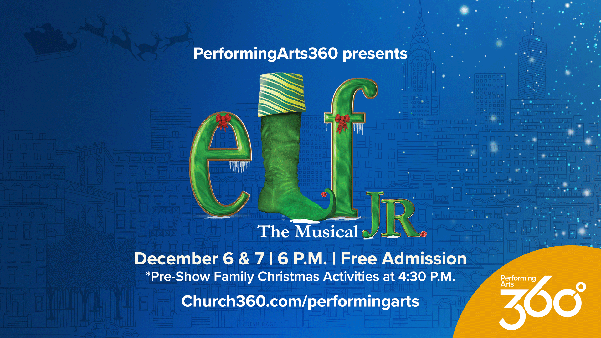 Performing Arts 360 proudly presents Elf The Musical Jr. on December 6 & 7 at 6:00 P.M. in The Student Building at Church360 (6450 South State Highway 360, Grand Prairie, TX 75052) — and you’re invited to join the fun!